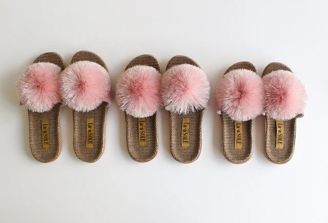 KIDS SIZE POM POM SLIDES PINK